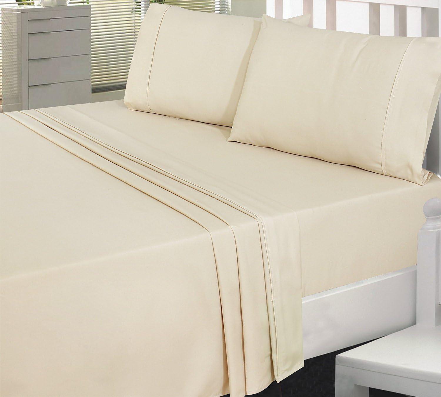 Cotton Sateen Twin Bed-Sheet-Set Beige – 3 Piece Bedding Set, Flat Sheet, Fitted Sheet and a Pillow Case – by Utopia Bedding (Twin, Beige)